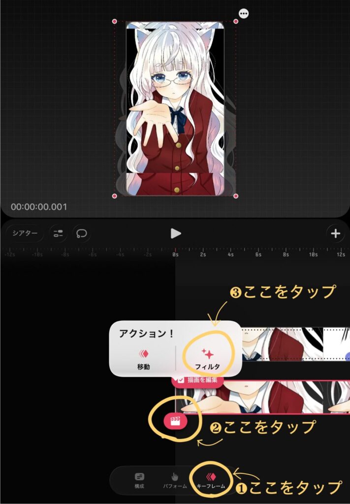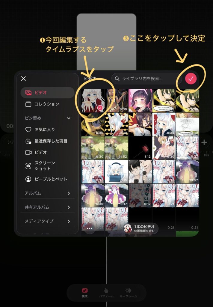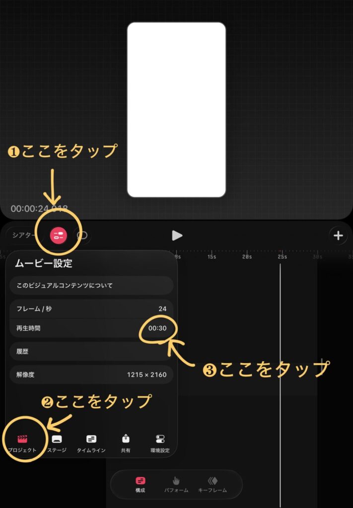 ❶~❸の順番でタップをしていきます。