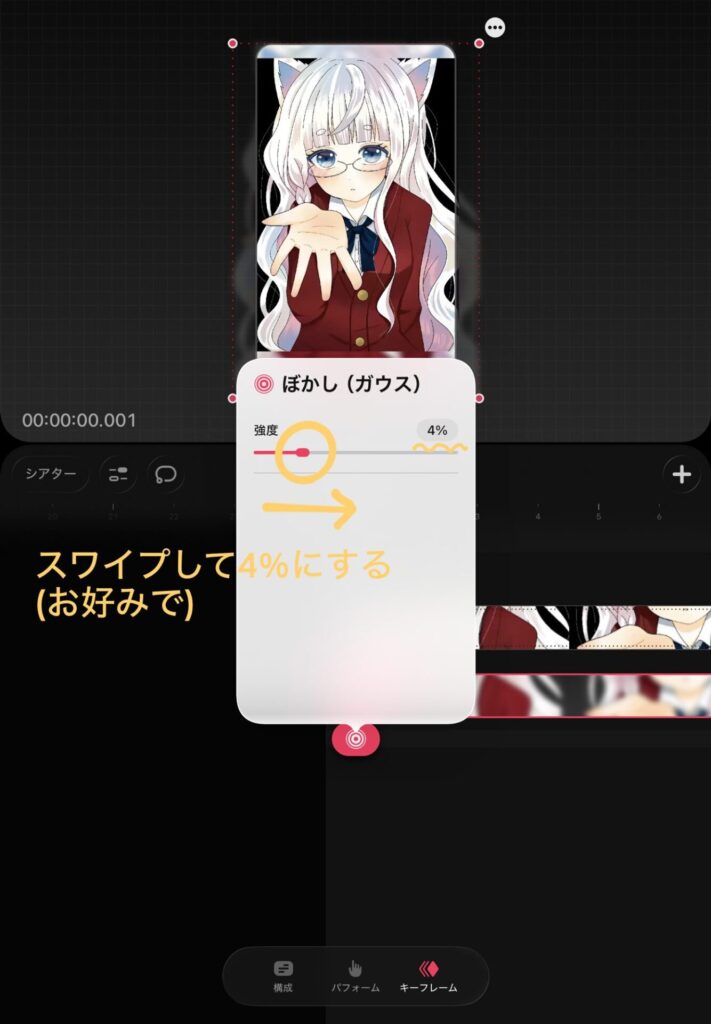 ぼかしの強度を右にスライドさせるとぼかしが強くなります。