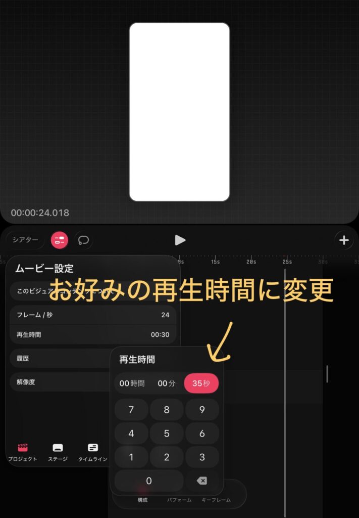 まずは動画の時間を変更します。