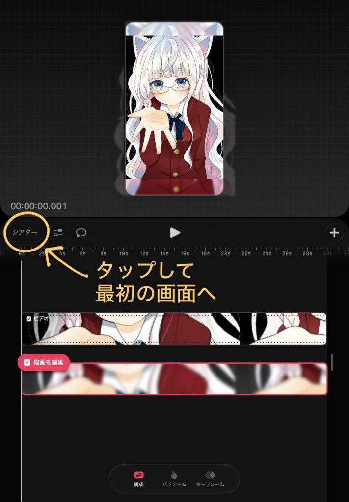 画面真ん中にある「▶」をタップし、破綻してるところがないかの確認をします。