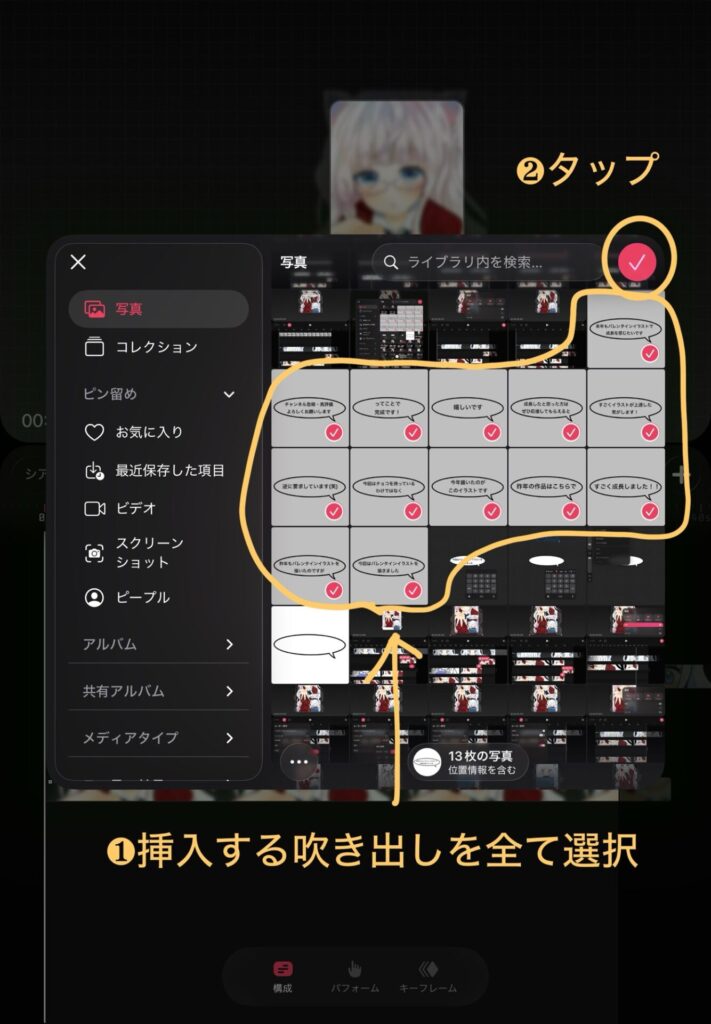 ❶~❸の順番でタップしていきます。
