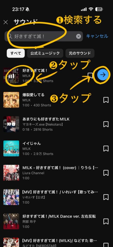 ない場合は検索し、❷、❸の順番でタップします。